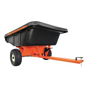 - Functional tailgate and recessed hardware make dumping effortless; universal hitch fits many different lawn and garden tractors